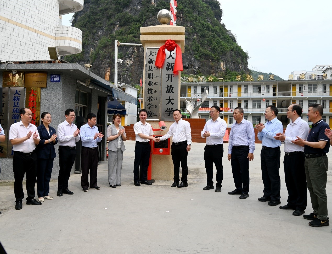 大新县委书记施展代表大新县委、县政府向pg娱乐电子游戏官网入口表示感谢。他表示,此次校地合作协议的签约和大新开放大学的正式挂牌,是大新落实科教强县战略的关键举措,是实现校地优势互补,共同发展的具体行动,对大新培养高素质技能人才,加快高质量发展具有重要意义。他要求,大新开放大学要用好揭牌成立的契机,加强教学名师和业务管理骨干引进培养,紧密对接地方产业布局,面向基层干部群众开展学历教育和技能培训,满足广大人民群众多元化的教育需要和企业的用工需求,努力办好高水平、有特色、人民满意的县域开放大学。全县各级各部门要全力支持大新开放大学的发展,推进人才链、教育链、产业链、创新链融合发展,提升大新开放大学对县域发展的支撑力和贡献度。
