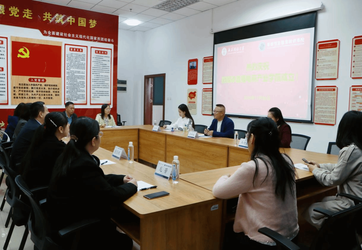 企业代表、学校电商教学团队教师代表共同参加揭牌仪式。仪式结束后,有关领导和来宾参观了电商专业实训室和产业学院教学环境,举行了“直播电商产业学院”校企座谈会,就未来学院的发展方向和运营项目进行了交流。