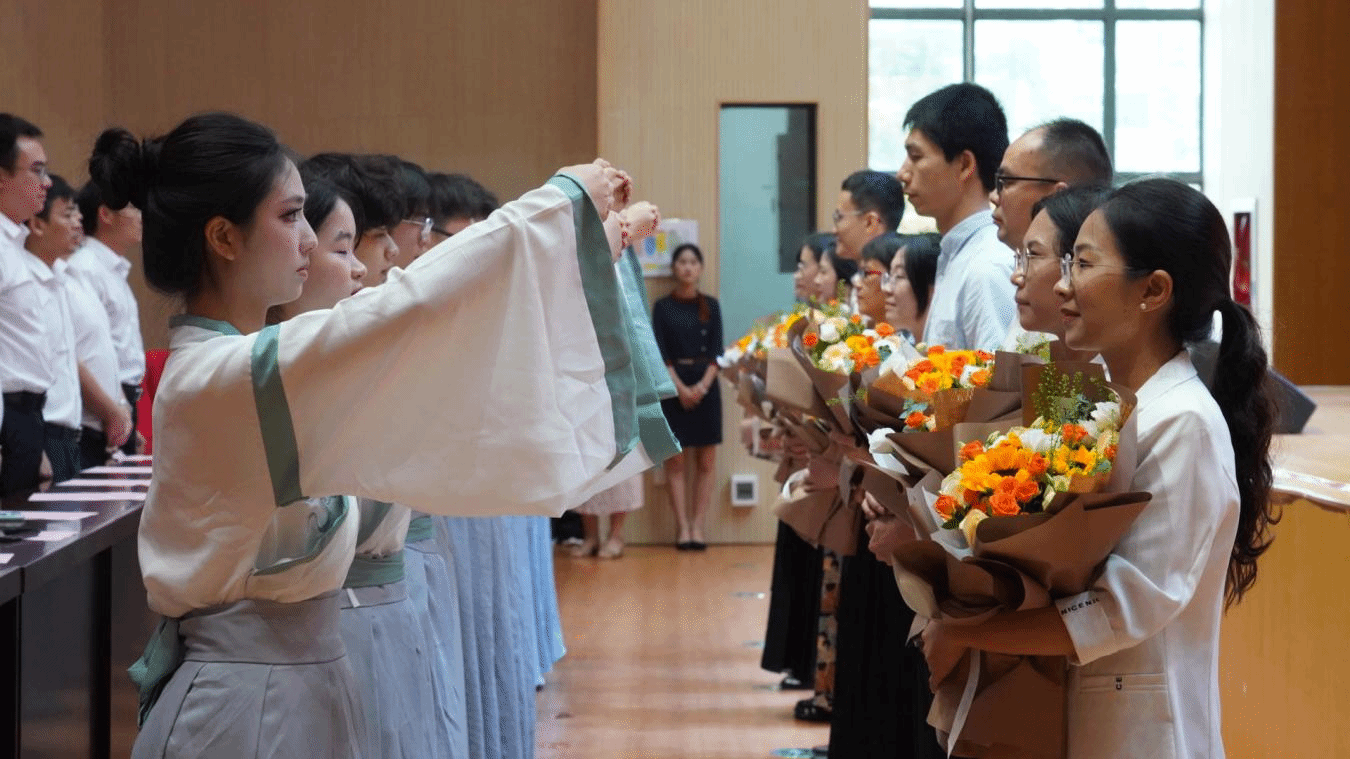 典礼上,同学们向朝夕相伴的老师鞠躬行谢师礼,表达感恩之情。