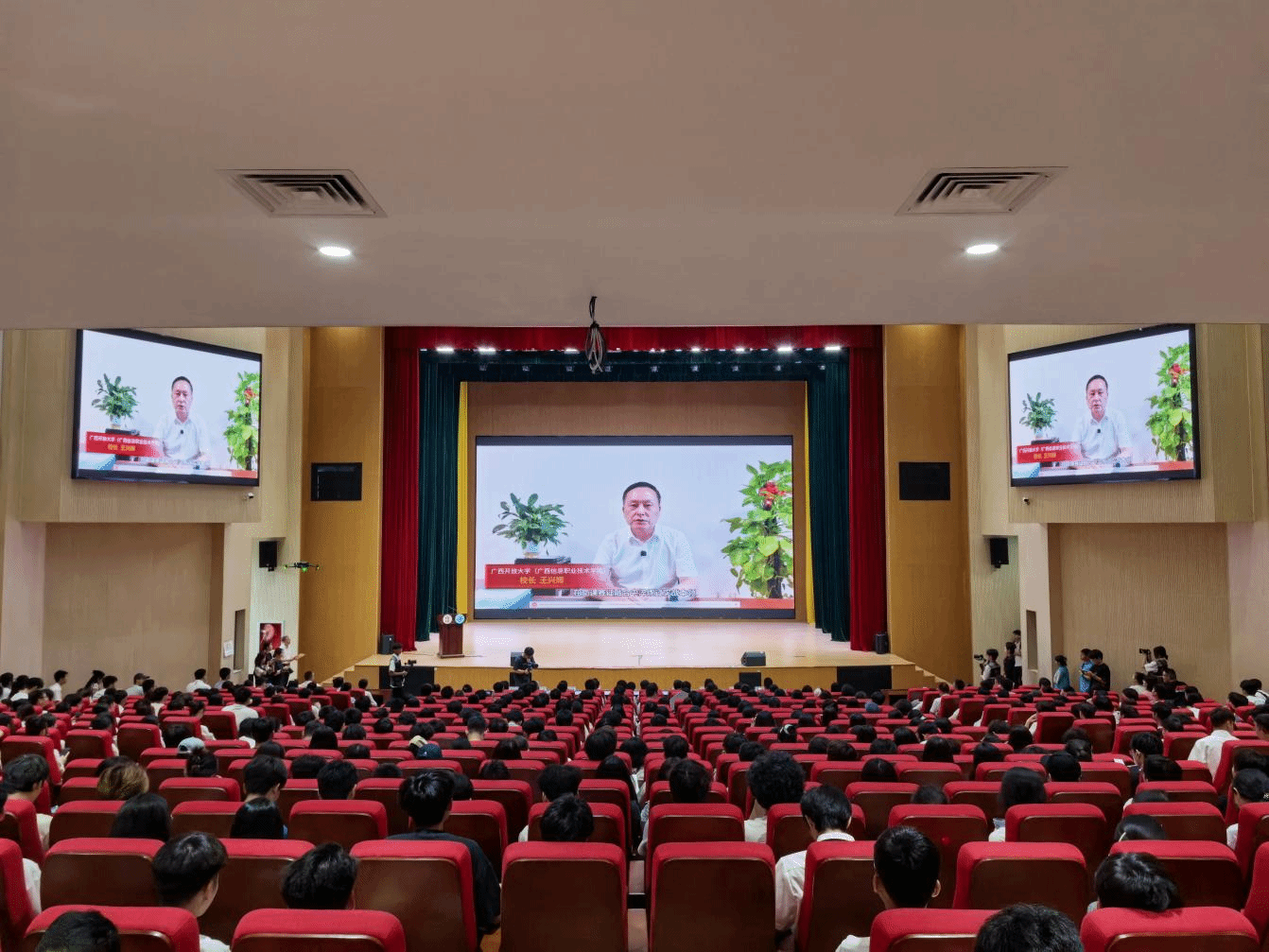 随后,一段精心制作的视频,以一帧帧珍贵画面,带领大家回顾了校园生活的点点滴滴:从初入校园时的懵懂青涩,到课堂上全神贯注听讲的模样,再到社团活动中活力满满的精彩瞬间,勾起了同学们满满的回忆。大屏幕上,学校领导发表的真挚寄语,鼓励毕业生们勇担时代责任,勇敢追逐梦想。老师和朝气蓬勃的学弟学妹们一同为毕业生们送上了“前程似锦、大展宏图”的温暖祝福……视频凝聚着全校师生对毕业生们的爱与期许,为他们的新征程注入力量。
