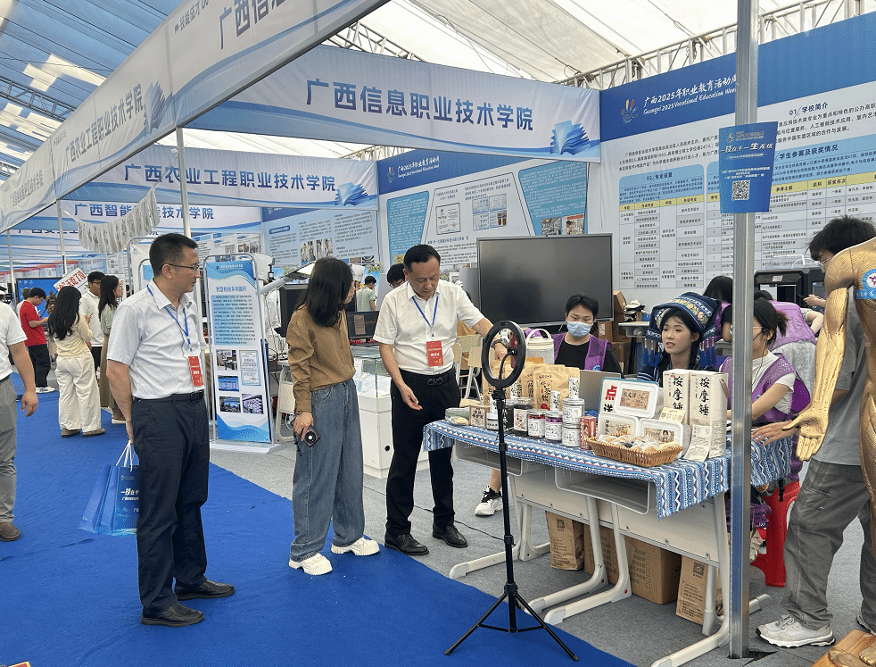 据悉,广西2025年职业教育活动周以“一技在手,一生无忧”为主题,现场设置6个主题展区,聚焦职业教育高质量发展,全方位展示了我区职业教育的发展成果与蓬勃活力。学校将以本次职业教育活动周为契机,进一步弘扬劳动光荣、技能宝贵、创造伟大的时代风尚,持续提高学校人才培养质量,努力培养更多高素质技术技能型人才,为建设新时代壮美广西贡献智慧和力量。