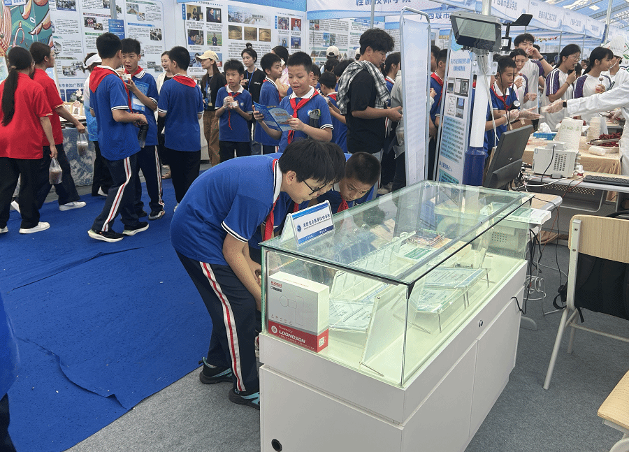 学生们驻足观看北斗高精定位技术系列芯片
